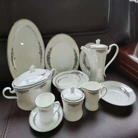 Vajilla de cerámica con diseño de hueso para el hogar, juego de cena de porcelana, 61 piezas, para Hotel y restaurante