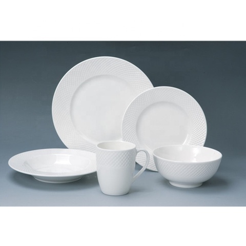Juego de vajilla para restaurante de porcelana de hueso nuevo al por mayor platos de cerámica en relieve blanco utensilios de cocina