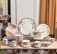 Tangshan City Unique Shape Bone China Juego de vajilla con diseño floral Juego de tazas de cerámica hechas a mano